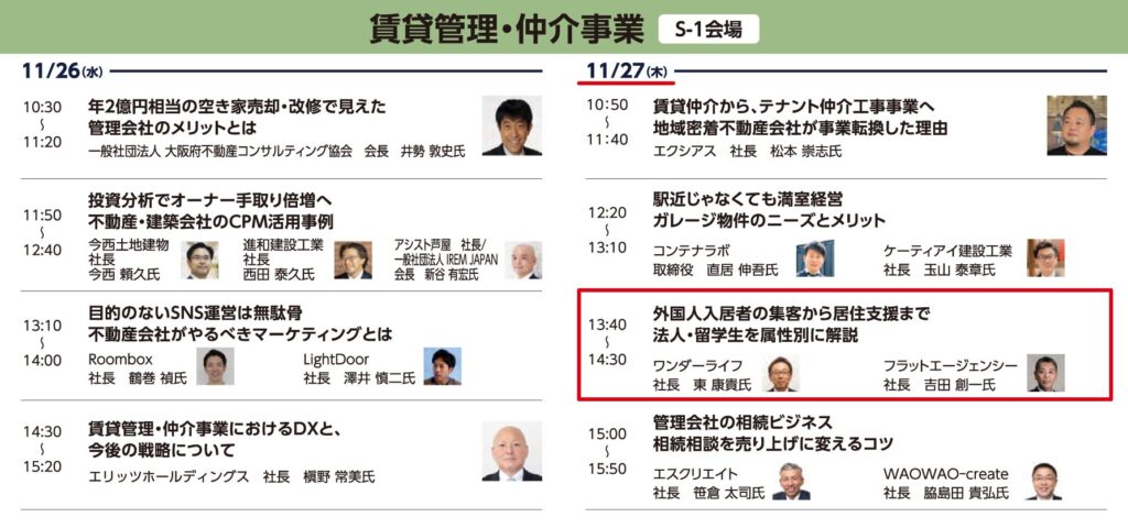 2025年11月26日(水)・27日(木)の2日間にわたり、インテックス大阪で開催される 「賃貸住宅フェア2025大阪」 において、当社代表取締役社長 吉田 創一が登壇いたします。